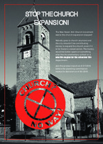 A flyer distributed in New Haven. The flyer is calling people to stop the expansion of the church wing. What do you notice?
